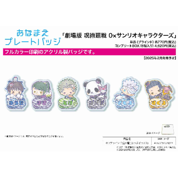 おなまえプレートバッジ 劇場版 呪術廻戦 0×サンリオキャラクターズ 01 コラボイラスト (名牌徽章柔術回戰劇場版 0 x 三麗鷗角色 01 合作插畫)
