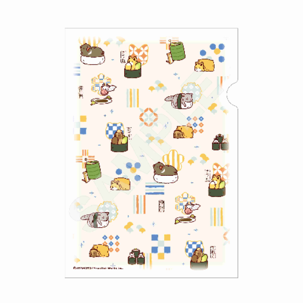 タヌキとキツネ 和紙ファイル 03 ホワイト(Enjoy!OSUSHI!) (浣熊和狐狸日本紙文件夾 03 白色(享受!OSUSHI!))