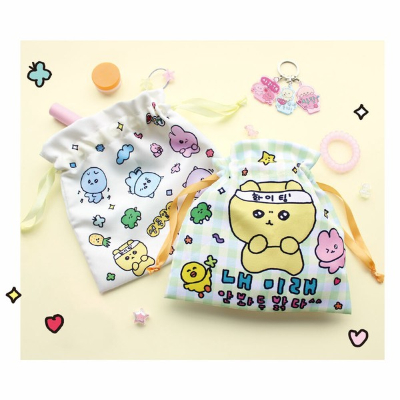 Chegosim Ribbon Flat Drawstring Bag Fighting (チェゴシム リボンフラット巾着 ファイティン)