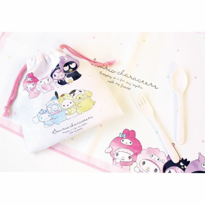 Sanrio Characters Flat Drawstring Bag Hugukko (サンリオキャラクターズ フラット巾着 はぐっこ)